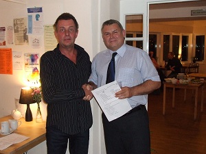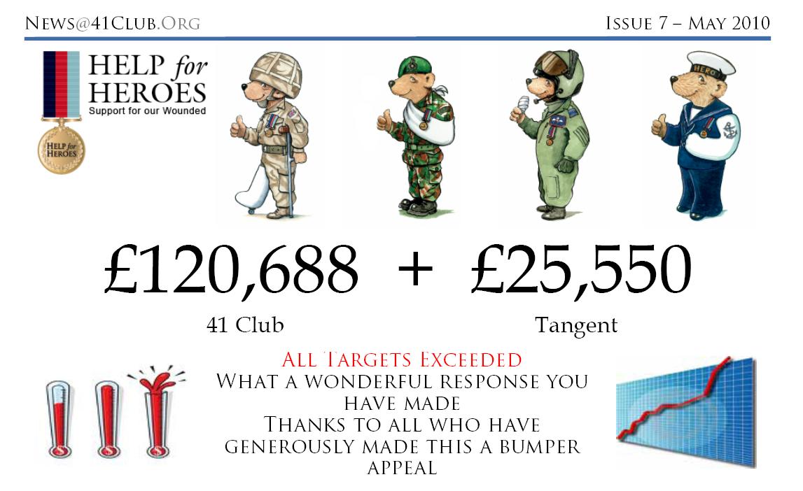 At our club AGM on Monday 21st September 2009 it was proposed by our outgoing treasurer Neil Bates and seconded by incoming treasurer Sean Smith that all the remaining money (£67) of our membership club account would be given to this years National President's nominated charity "help to heroes". The motion was voted upon and carried unanimously by the full room of members (plus 5 other people present who were nothing to do with our club - strange!)