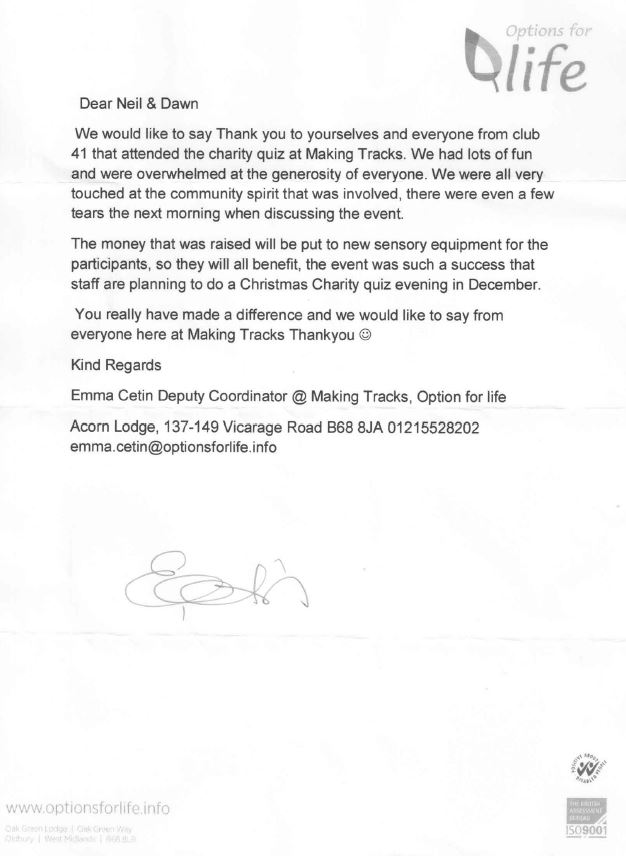 NOVEMBER 2021: Thanks all for a good meeting tonight and things look positive for the future of ABC J I did mention tonight that Options for Life who run my daughter’s day centre, which we have supported with a couple of quiz nights in the past, have just set up a crowdfunding page. They are looking to get support for a music project for people with learning disabilities and/or autism. The page is here: https://www.justgiving.com/crowdfunding/options-for-life?utm_id=1&utm_term=g5pqp6WY9They have a big target but it will be a great help for disabled people in the area [not just children like many other charities]. If you can help with a donation or can pass this on to others, that would be great. As we also agreed, I will try to arrange a quiz night for our April meeting – subject to covid allowing us to use the centre. Best wishes, Neil