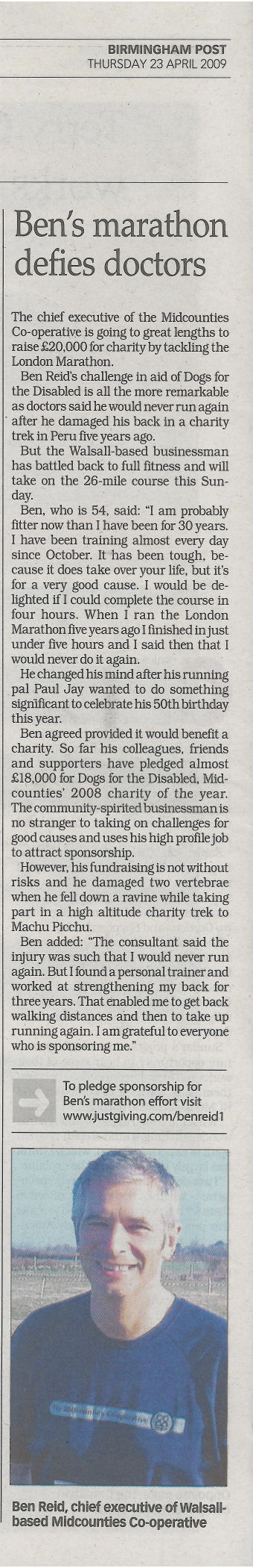 Gentlemen your support is invited: Dear friends, business partners and associates. The Midcounties Co-operative is in its second year of charity partnership with The Teenage Cancer Trust, the UK’s only charity dedicated to improving the lives and chances of survival of cancer patients aged 13 to 24. Our aim is to raise £500,000 by February 2015, so far the amount raised stands at £380,000. The work of the Teenage Cancer Trust has been highlighted in recent weeks by the media coverage of Stephen Sutton. I am sure that we were all moved by the courage shown by Stephen in his fight against cancer. It is amazing how he motivated people to donate money to the Teenage Cancer Trust and so far he has raised over £4 million. Quite a legacy. I have to say I have been inspired by him as well and therefore I am asking people to sponsor me on my Coast to Coast walk. This is a 13 day, 194 mile trek which I am sure will challenge my fitness and I suspect my feet. The walk starts on the 13th of June. I realise that we all get lots of requests for sponsorship but if you were able to donate even a few pounds it will make a difference to people like Stephen in the future, and who knows , one day, there might not even be a need for a Teenage Cancer Trust because we have beaten the disease. You can be assured that every penny you donate has been ring fenced to go directly to providing nursing care for young people and will not be taken up in administrative costs. Please give what you can via my just giving site http://www.justgiving.com/Ben-Reid5 and I will do my best to complete the challenge and maximise donations.