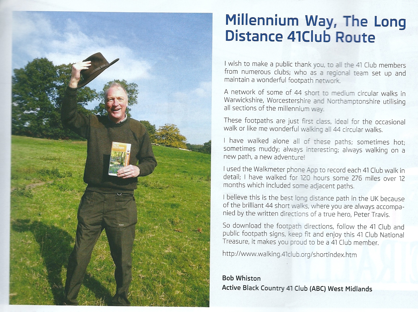Photographs of me completing the Millennium Way, the long distance 41 club