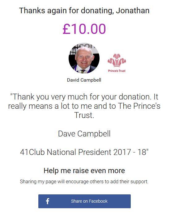 This I have sent to the "Princes Trust" as part of the campaign promoted